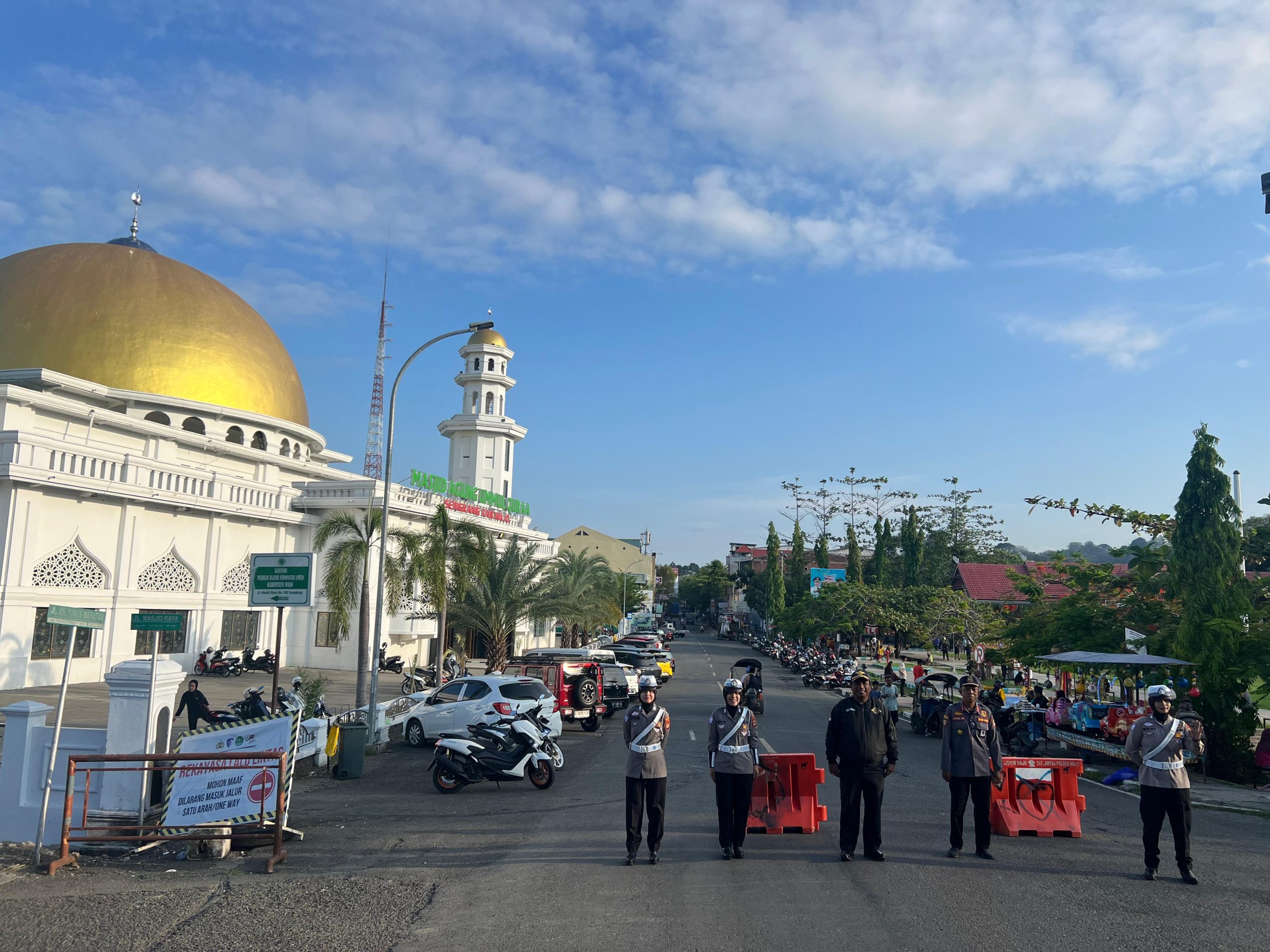 Dengan senyum dan sapaan hangat, para polwan Sat Lantas ini turut menciptakan suasana yang aman dan tertib. Mereka tak hanya memastikan jalur bebas kendaraan tetap steril, tetapi juga membantu masyarakat yang membawa anak-anak atau lanjut usia agar dapat menikmati kegiatan dengan nyaman.