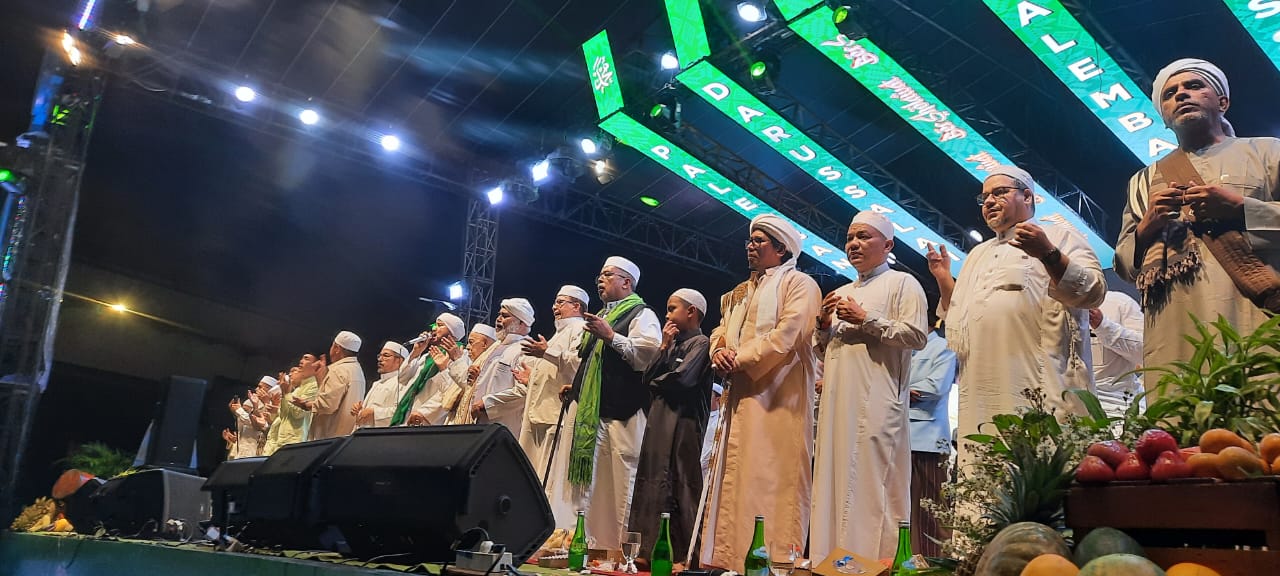 Ribuan jamaah tampak memadati lokasi dari sejak sore, mereka datang dengan penuh antusias, membawah sajadah, mengenakan busana muslim, serta mengibarkan bendera bertuliskan kalimat tauhid, kawasan Jakabaring pun berubah menjadi lautan manusia yang larut dalam doa, zikir, dan lantunan sholawat.