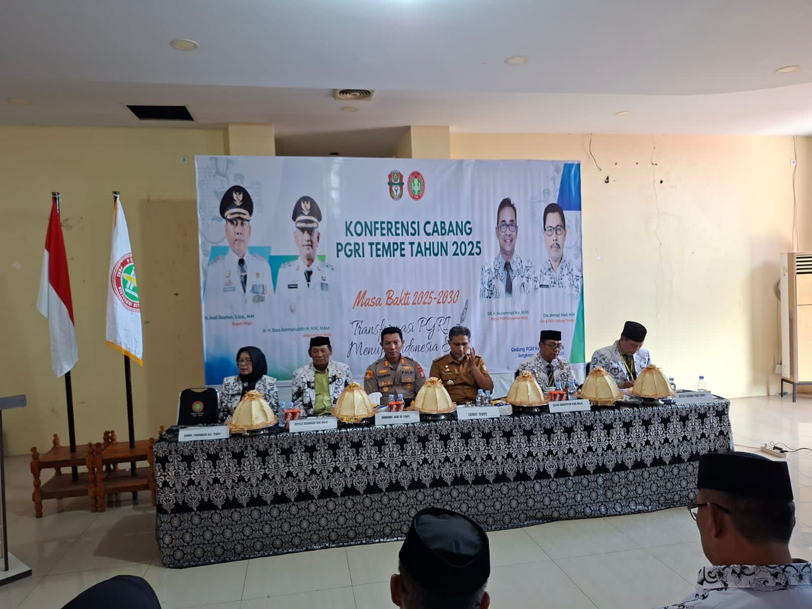 Konferensi yang mengusung tema “Transformasi PGRI Tempe Menuju Indonesia Maju” ini juga dihadiri oleh berbagai tokoh penting, antara lain Ketua PGRI Kabupaten Wajo, Dr. Muhammad Nur, M.Pd., Camat Tempe, Sultan Makulle, S.P., M.Si., Ketua Demisioner PGRI Cabang Tempe, Drs. Ahmad Riadi, MM., serta pemilik hak suara di wilayah Kecamatan Tempe.
