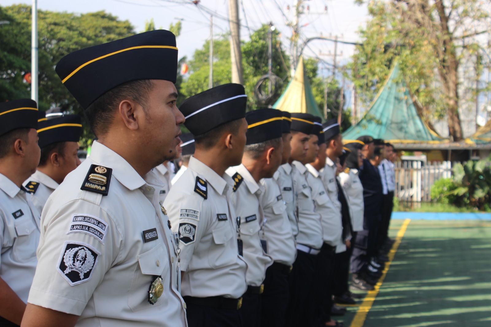 Apel yang berlangsung di halaman depan Lapas ini diikuti seluruh jajaran pegawai, mulai dari pejabat struktural, staf, regu pengamanan (Rupam), petugas P2U hingga CPNS.