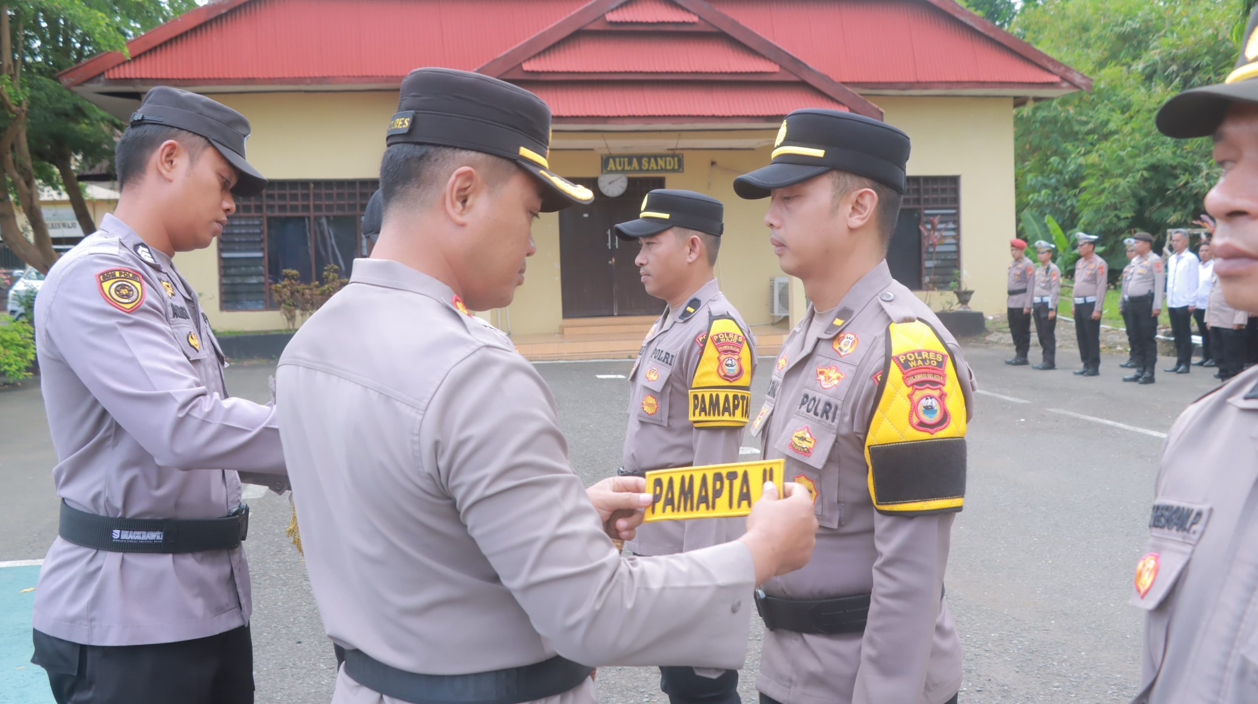 Dalam rangkaian kegiatan tersebut, dilakukan prosesi peresmian yang ditandai dengan penyematan ban lengan Pamapta kepada personel yang ditunjuk sebagai Pamapta I, II, dan III, sebagai simbol dimulainya operasional nomenklatur baru di lingkungan Polres Wajo.