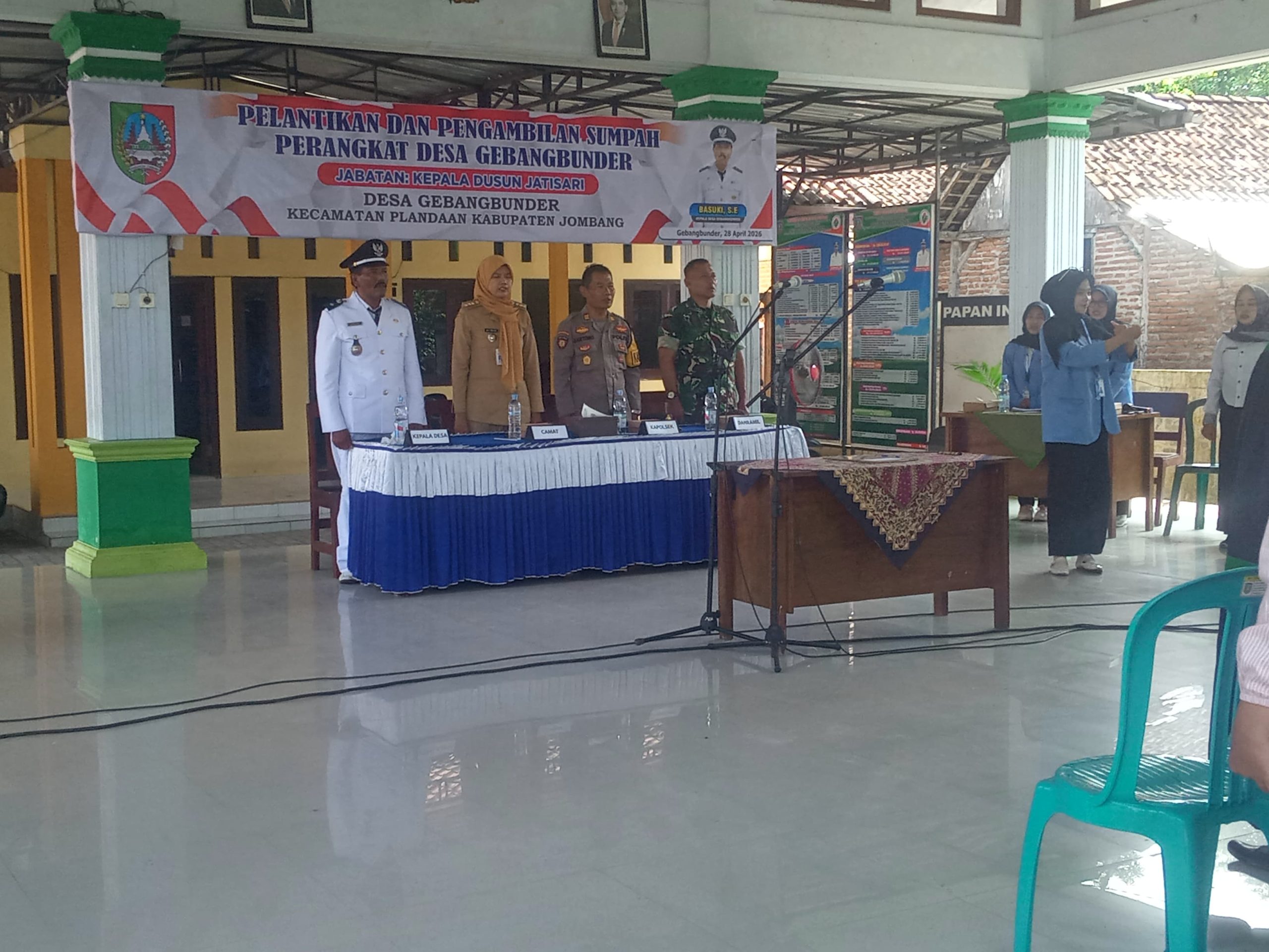 Jombang, 28 April 2026 — Pemerintah Desa Gebang Bunder, Kecamatan Plandaan, Kabupaten Jombang, menggelar acara pelantikan Kepala Dusun Jatisari pada Selasa (28/4/2026).