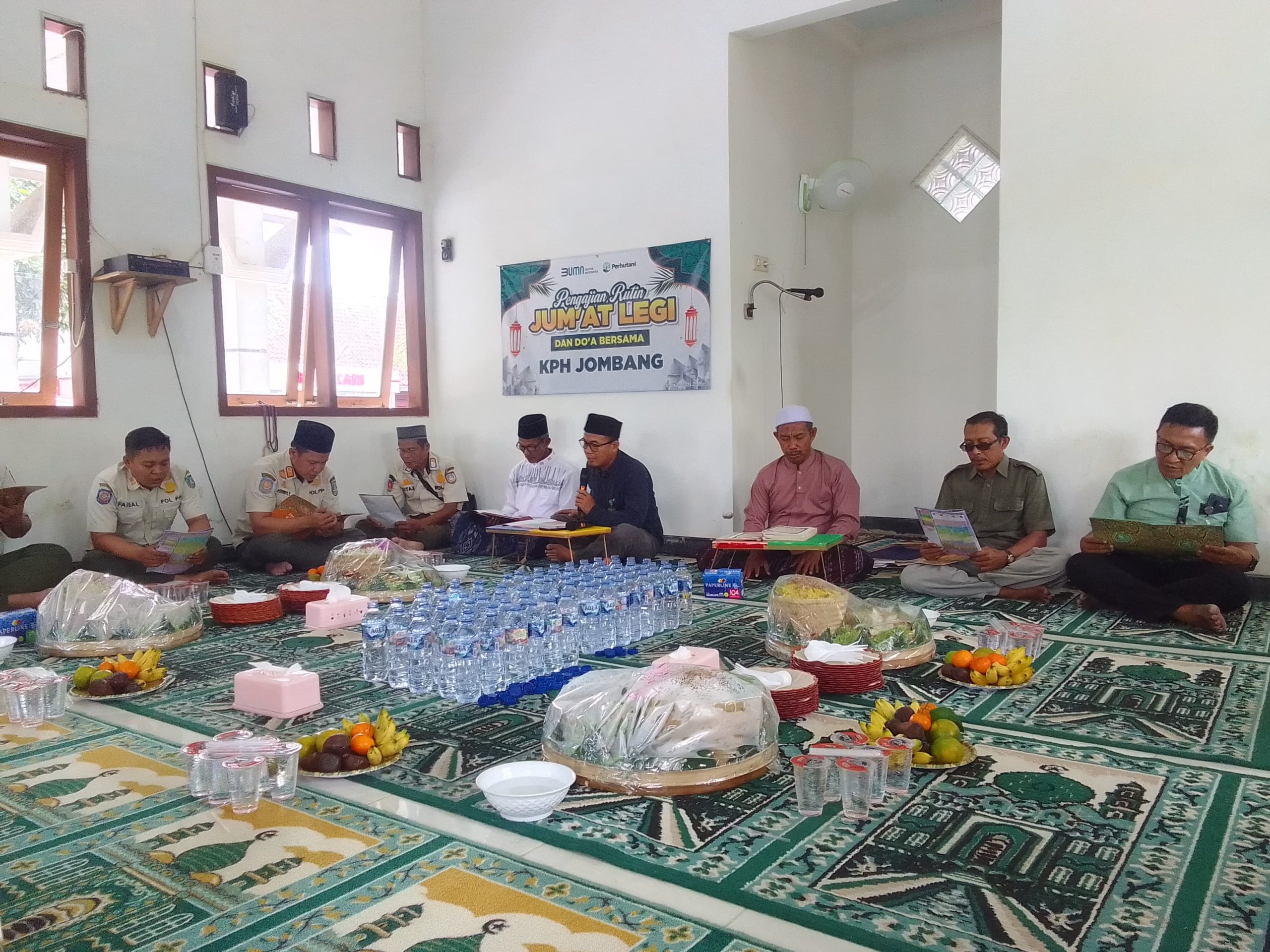 JOMBANG, PERHUTANI (23/04/2026) | Perhutani Kesatuan Pemangkuan Hutan (KPH) Jombang bersama, PHW 3 Jombang Satpol PP (Satuan Polisi Pamong Praja) Kabupaten Jombang, rekan wartawan Jombang, dan takmir mushola, menggelar tausiah dan doa bersama dalam rangka pengajian rutin karyawan yang dilaksanakan setiap Jumat Legi. Kegiatan tersebut berlangsung secara sederhana di mushola Al Fatah,tepatnya berada halaman Rumah dinas Perhutani jalan kusuma bangsa Kamis (23/04).