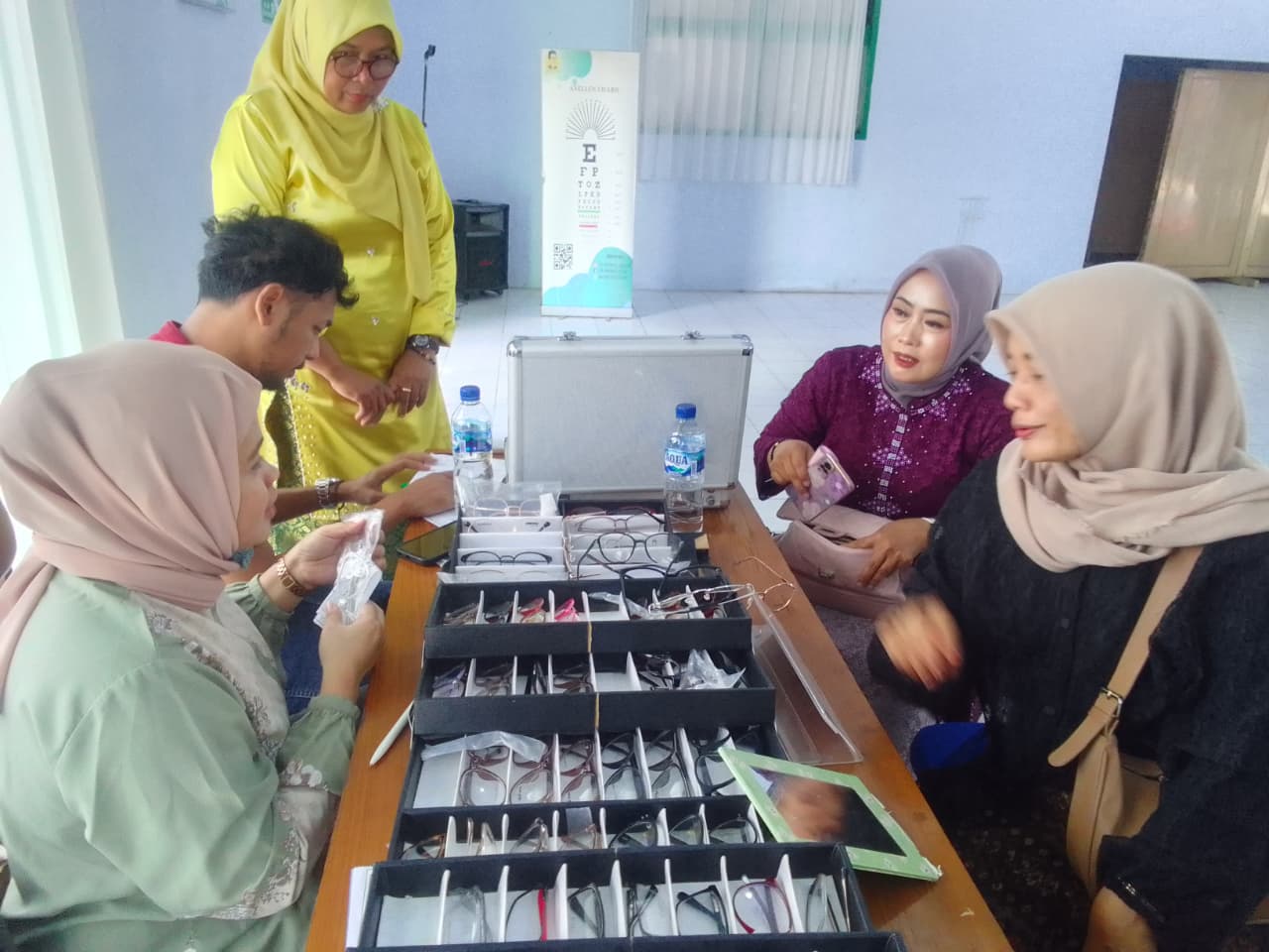 Tim Cek Mata dari Historia Optik, hadir yaitu Agustina Fidayati dan K. Suffi Optometrist, meliputi pemeriksaan Visus ,setraining kelainan miopia dan presbiopia