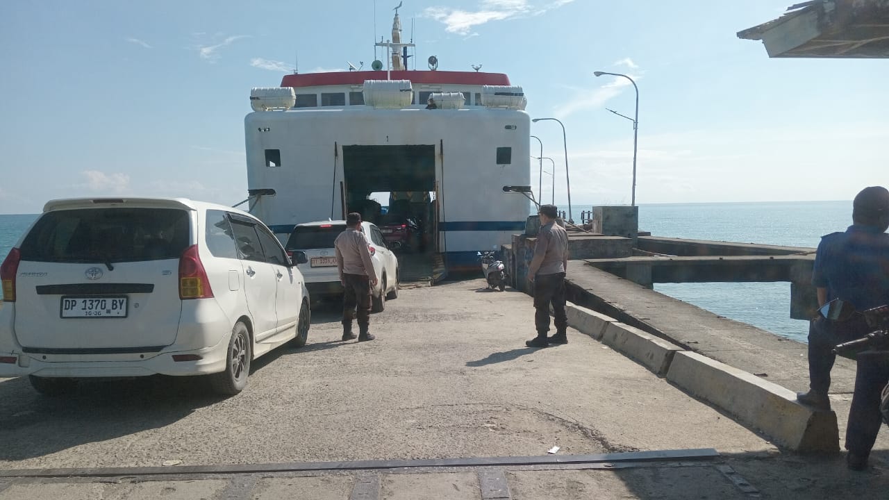 Petugas juga melaksanakan giat yustisi terhadap penumpang yang datang maupun berangkat melalui Pelabuhan Ferry Bangsalae Siwa guna memastikan keamanan dan ketertiban penyeberangan.