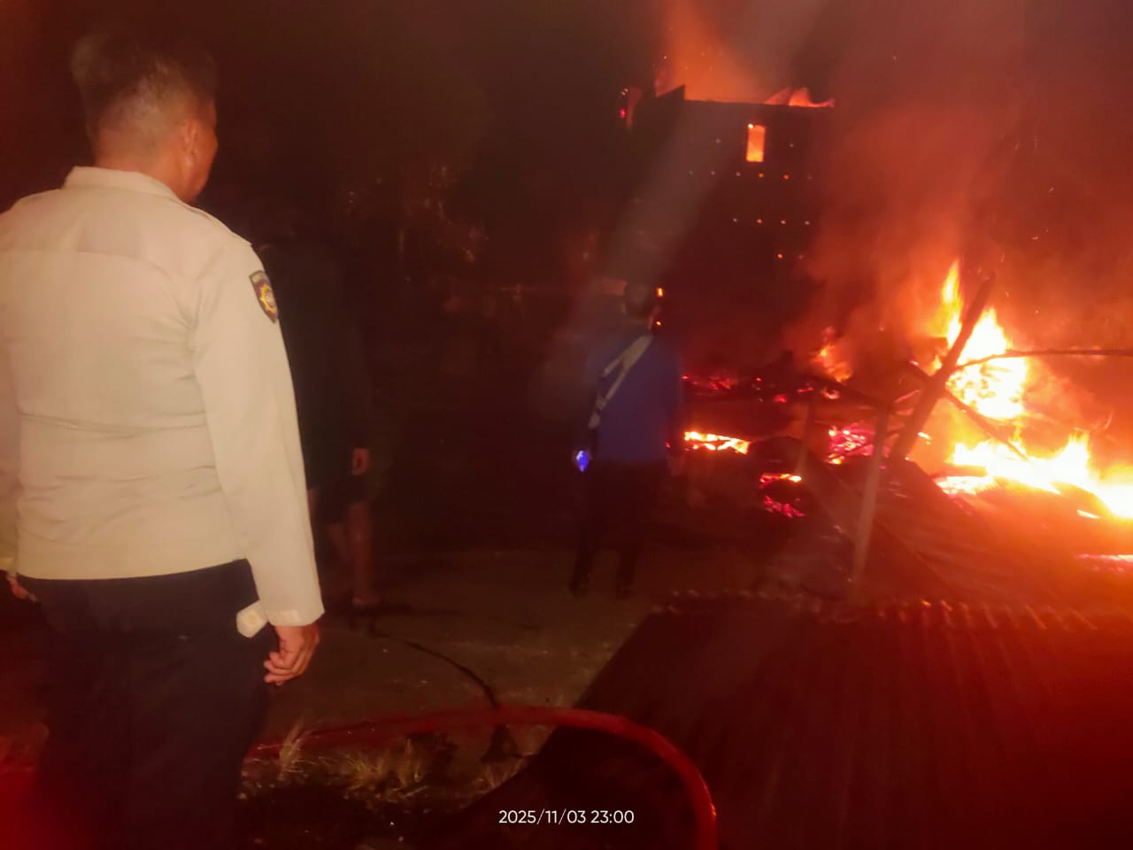 Bencana Alam : Terjadi kebakaran rumah pada Senin (3/11/2025) sekitar pukul 22.00 Wita di Dusun Batu Titti, Desa Alelebbae, Kecamatan Pitumpanua. Panit Reskrim Ipda Renhard Tangke bersama anggota segera mendatangi TKP untuk melakukan penanganan awal.
